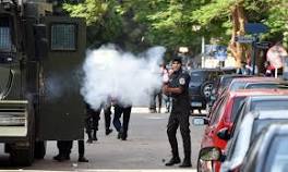 Egypt: eight police killed in attack on outskirts of Cairo Egyptian riot police fire tear gas towards protestors on 25 April, 2016 in Cairo. Gunmen killed eight police south of Cairo on Sunday. Photograph: ...
